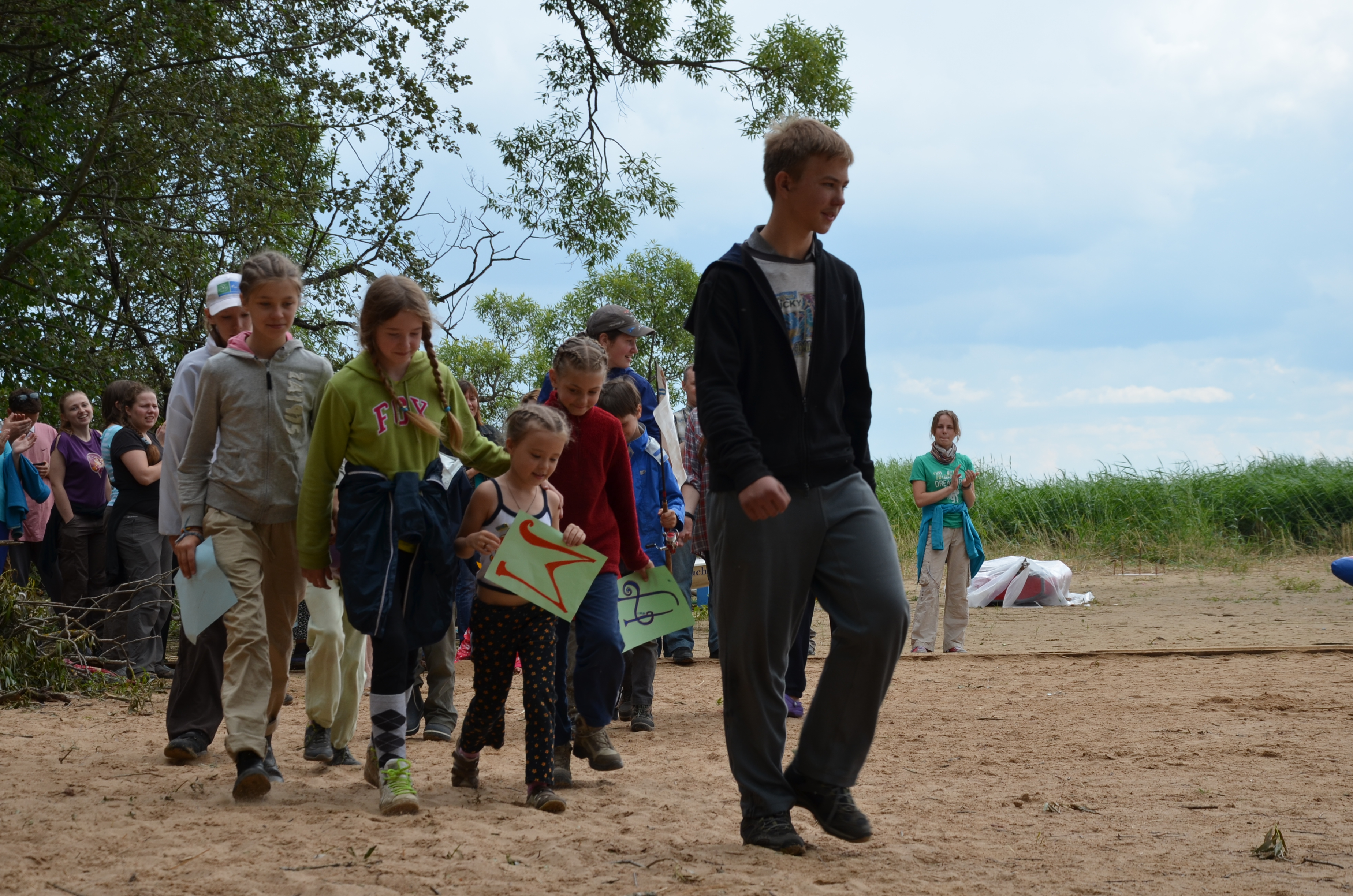 Вчера день выдался непростой. С утра потрясающее солнце, мы НАКУПАЛИСЬ!!! Играли в «захват флага», думали после обеда пляжное настроение продолжится. Не тут-то было... Огромная туча, а перед ней ветер сильнейшего порыва. У нас поднимались байды и Мева (без паруса) перевернулась. Выбежали с детьми на берег, на песок. Я видела сгруппировавшихся мобилизованных старших, мгновенно сформировавших полумесяц спин, закрывающих собой младших. Такая мгновенно выросшая надежная стена... Пять минут... каких-то несколько серьезных минут и все стихло, пошел дождь. Мы всем лагерем уместились под тентом Согласия, развели костер и пели песни. Все успокоились и на вечернем огоньке делились впечатлениями ужк как о приключении. Сегодня половина народа ушла в Краеведческий музей - ждем их с новостями! Сегодня тихо, спокойно, уютно, народ улыбается. Обнимаем! Мы ВМЕСТЕ. Здесь немного фоток https://plus.google.com/u/2/photos/118250863199356255380/albums/6031824538028228481