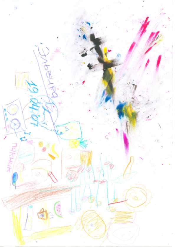За два часа на столике и окружающих тумбочках образовались целые горы продуктов нашего творчества  К сожалению, нам пора была уходить, гардероб уже закрывался. Именно под конец расшевелился задумчивый Ванька. Он быстро-быстро нарисовал дом с множеством светящихся окошек и солнышко