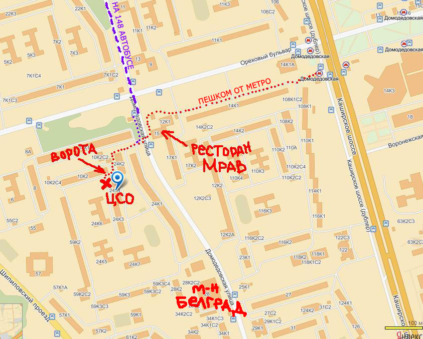 Встречаемся завтра в 13.10 у входа в ЦСО. Адрес: Москва, ул. Домодедовская, 24, корп.4. Карту прикладываю ниже.
