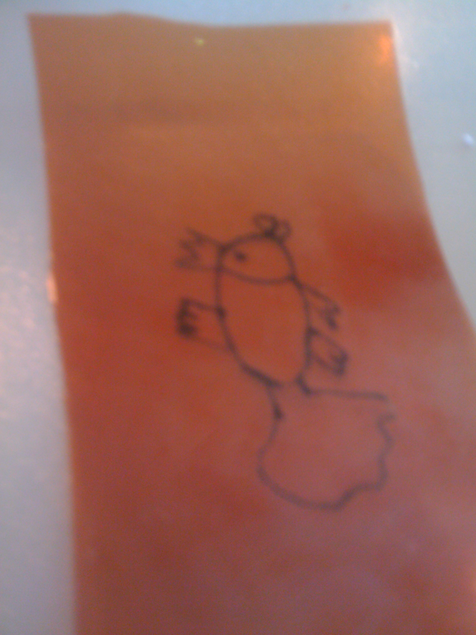 В понедельник занятия не было, потому что был праздник, а в четверг 16 июня мы делали магнитики. Материал был необычный, основу (бабочек и рыбок) мы вырезали из бутылок. Точнее, для малышей я вырезала дома заранее, и они просто украшали магнитики блестками, а старшие девочки и мамы рисовали, вырезали и украшали сами. Малыши быстро сделали себе по магнитику и растащили их по палатам на просушку. Анюта тоже поучаствовала, несмотря на то, что была привязана - мы ей передали розовых блесток и бабочку прямо в палату) Такие вот получились магнитики у Зули: . А Карина сделала двух бабочек, которых можно цеплять на футболку: . Одна из мам делала золотую рыбку, пока сынишка у нее на руках отходил от наркоза, очень красивая вышла: . Потом Карина с Зелый решили повторить золотых рыбок, по-моему, у Карины вышло очень здорово: . В общем, я даже пожалела, что не взяла фотик (боялась, что не успею и детям помогать, и фотографировать)!