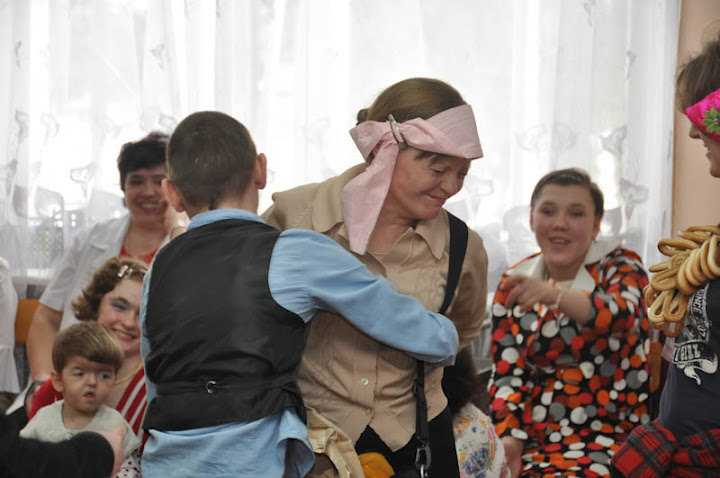 Сегодня мы ездили в Тульскую область,а точнее к детям в Головеньки. Хочется сказать, что день наш начался с плотного-плотного тумана, видимость была довольно плохая...шёл дождь,но когда мы подъехали к зданию детского дома, то выглянуло солнышко, с того момента погода начала налаживаться. Нас встретили очень тепло, накрыли большой стол с горой всяких вкусностей, что не могло не порадовать) А еще там было множество чашек, видимо они рассчитывали человек на 30, а нас было,если не ошибаюсь 12. Но малочисленный состав ничуть не помешал состояться Празднику! Так получилось,что наш рулевой забыла все костюмы, поэтому когда мы начали смотреть в сумках,то обнаружили,что нет ничего,кроме огромных чёрных сапог. Позже на обсуждении я услышала,что в этот момент некоторых посетили панические мысли..но лично я знала,что мы справимся) В общем, немного пообсуждав, решили мы быть пиратами. Сценическое перевоплощение было мгновенным и как ни странно довольно успешным. Все дамы сделали причёску "аля-Баба яга" на голове и завязали сверху платками.(Кстати, это мне понравилось быть лохматой) Еще мы одели по одному сапогу на ноги, как могли засучили джинсы и кофты..Сделали синяки под глазами специальными маркерами для раскрашивания(их нам любезно предоставили работники детского дома) и размулевали лицо, кто во что горазд ...Вид у нас был мягко говоря странноватый...возможно в психушке нас приняли бы за своих) Перед тем как мы собственно начали играть с ребятами они устроили нам небольшой концерт. Девчёнки очень мило танцевали под зажигательную песню..там было что-то такое: "С днём рождения-ия-ия поздравляю тебя, с днём рождения!", мальчишки сыграли на музыкальных инструментах русскую народную- "Яблочко" и даже станцевали под неё. Видно было, что персонал очень старается показать нам своих воспитанников в самом лучшем свете. А значит им далеко не безразлична судьба этих детей.. Потом вышли мы(пираты), объявили что нам надо открыть коробочки, чтобы найти какое-то загадочное сокровище.. Ах, да..кстати, когда мы входили такие все лохматые и странные ребята хлопали в ладоши и очень смеялись))Ахах,да я и сама бы посмеялась,если бы могла смотреть со стороны. И у нас был пират-повар(Оля Алымова), на шее у неё висели сушки, в руках был половник и она предложила детям варить суп из морковки, которую они должны были собрать в коробку. Так вот, каждую игру мы открывали по одной коробочке,при этом выбирая "номинанта" из зала, который будет помогать в этом деле..И одного мальчишку взяли в свою пиратскую банду,боевое крещение он прошёл прямо на месте и очень органично влился в нашу компашку) Мне понравилась маленькая девочка с ДЦП-Яна Волкова. Когда мы танцевали утят, то почти всех ходячих вытащили в центр,а она тихо сидела в коляске смотрела на меня. Я решила взять её с собой, мы с Яной танцевали вместе со всеми, и она была так безумно рада!!!Она очень позитивная, улыбка просто от одного уха до другого! Ей это всё очень нравилось,а меня радовало,что ей это нравится) Немного поиграв, мы наконец раскрыли последнюю коробку с сокровищем. А потом пошли фотографироваться) Дети, по-моему, были в восторге от всего: от нашего внешнего вида, от игр, от приятных слов, и в первую очередь от того, что мы приехали)В общем экспромт удался на славу!)Ура!Они звали нас ещё, и думаю мы приедем)