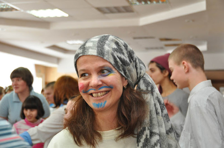 Да-да-да! Спасибо за рассказы и фотографии. Рулевой, забывший дома сумки с реквизитом, это я! Расскажу немного "со своей колокольни". Потому что ЭТО БЫЛО КРУТО!!! Но начну издалека. Игровые поездки мы "придумали" несколько лет назад. Идея заложена в названии - приехать и поиграть с детьми без особых "усилий" и "долгой подготовки". В последнее время мне стало казаться, что мы сделали из этих встреч "событие". И я повторяла: "Давайте относиться к этим встречам ПРОЩЕ!" И вот сегодня у меня, бестолкового рулевого, и у всей нашей прекрасной команды была возможность на деле убедиться, что это возможно. Сначала наша довольно большая (по списку) команда сократилась до 13 человек! И многие, как оказалось, "не в теме". Посмотрели мы друг на друга у метро и решили, что не очень представляем, как вести встречу, по какому сценарию, поэтому надо расслабиться и действовать по ситуации. Кажется, я даже сказала свое любимое: "Давайте относиться проще" А когда стало ясно, что переодеваться не во что  , нам ничего не оставалось, как... начать "относиться ко всему проще". Вот тут-то и началось самое интересное: в ход пошло все, что было найдено. Тут же "слепили" сценарий, концепция которого была примерно такая: надо использовать ВСЕ, что мы привезли. А привезли мы немного, но, как оказалось, достаточно: ящик моркови  , две пары сапог, коробочки с подарком, бумбокс и диск для Новогодней сказки. Наташа Авербух вспомнила про пиратов, мы решили, что коробка с подарком будет найденными сокровищами, из моркови будем варить суп  . И началось ПЕРЕВОПЛОЩЕНИЕ. Чемпионом по количеству потрясающих идей стала Любовь Андреевна. Увидев, как радостно, с азартом она помогает всем создавать образы из ничего, я окончательно успокоилась. А когда сама Любовь Андреевна перебинтовала себе голову розовой туалетной бумагой, я подумала: "Все будет отлично!!! С такой командой не пропадешь!" И точно: все получилось так, как будто мы многократно репетировали. Не было ни одной неловкой паузы, каждый был на месте, вовремя звучала музыка и даже раздавались волшебные звуки, когда открывалась очередная коробка (Никита - супер!!!  ) Всем еще раз спасибо за чудесный день! Да, и, конечно, спасибо ребятам и педагогам за концерт!!!
