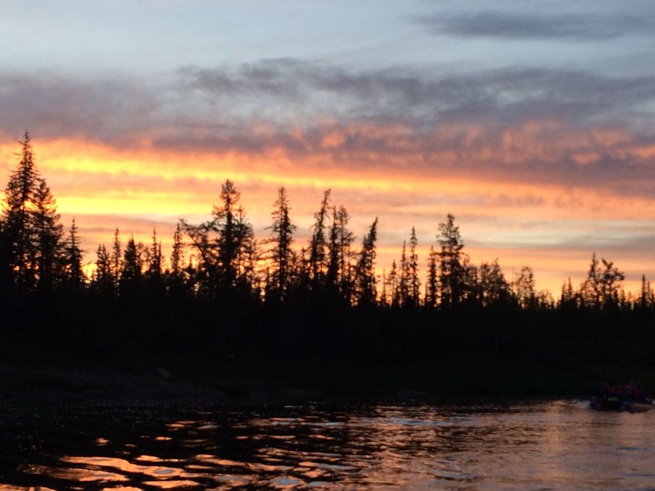 Привожу цитаты с фотками из беседы в WhatsApp с походниками (вечером появилась мобильная связь): "Подходим к Катравоже(и,у)  ) Всё хорошо: утепляемся, так как просто летим по воде. Сегодня очень тёплый день: утром все купались и грелись на солнышке. Рыбаки наши поймали 15 больших щук. От-таких!!! Завтра нас уже ждёт Обь. Обнимаем!" "Вчерашний закат: